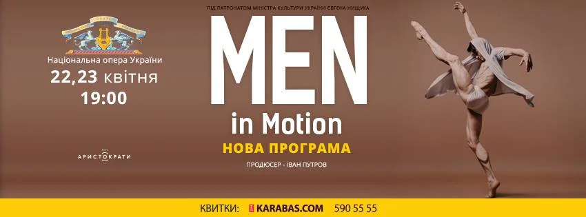 'In Duet' at Men in Motion Sunday, April 23, 2017 7:00 PM 8:00 PM National Opera of Ukraine (map) Google Calendar ICS In 2014 dancer and artistic director of the performance series 'Men in Motion' asked me to create a male duet for him and Tim Matiakis to be performed in Italy. On April 22nd & 23rd the duet will be performed again but this time in Kiev, Ukraine.https://kiev.karabas.com/men-in-motion